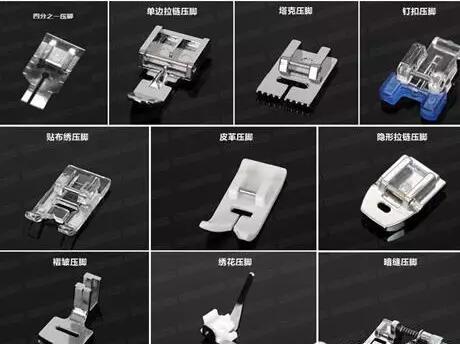 天津縫紉機配件中常用的還有高低壓腳、滾輪壓腳、劈縫壓腳、滾邊壓腳等,需要根據(jù)需要和面料類型來選擇。壓腳更換時還要根據(jù)面料的厚度來調(diào)整壓腳的壓力,來更好配合縫制。